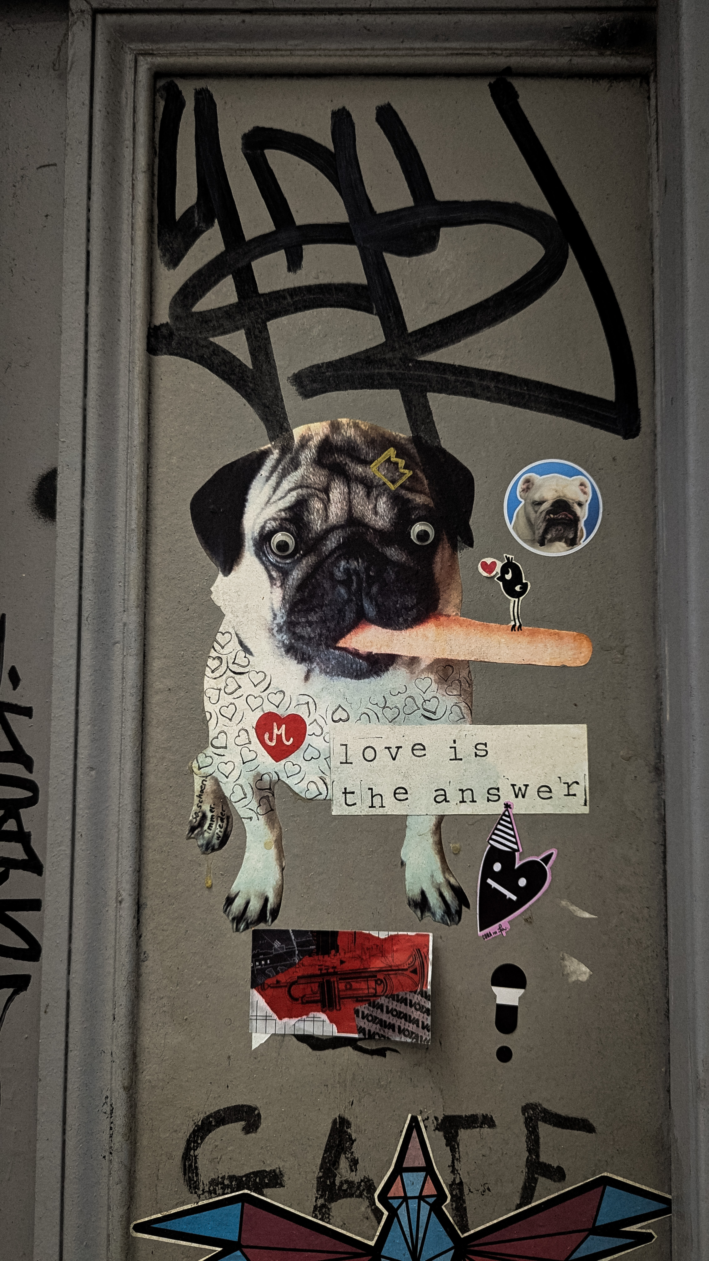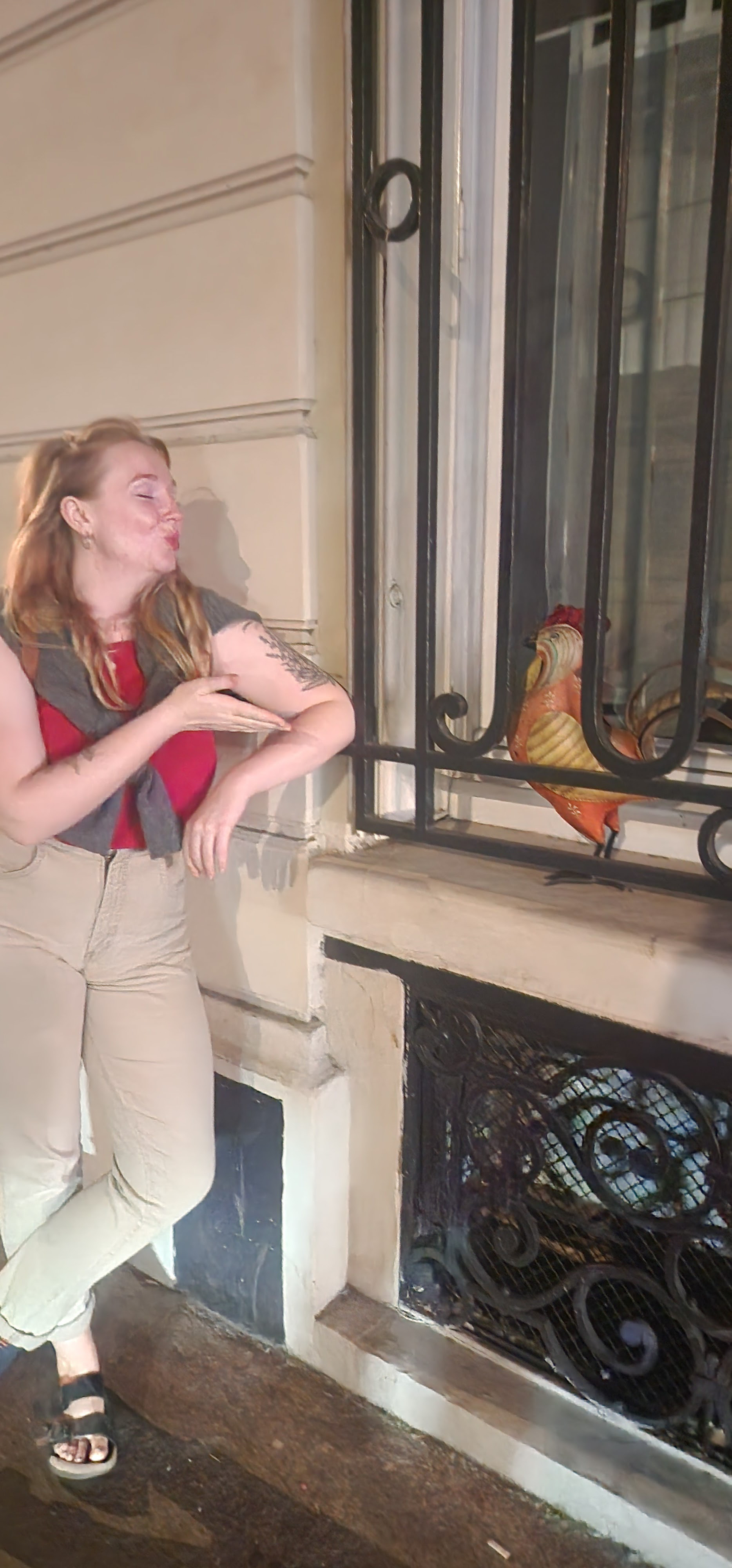 noteworthy: Superman Jesus in the Église Saint-Jean de Montmartre; a little boy burping during the choral music; lighting a votive for Joan of Arc; the whacky art/graffiti; the accordion player at the top of a massive flight of stairs (talk about a reward!); the numerous faces inlaid in walls seemingly at random; finding an ankle brace to steady my foot (LOVE when old injuries flare up!!!!); witnessing my sweet man in awe of the city.